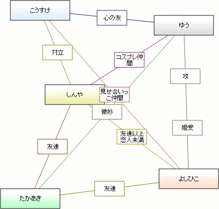 話変わりまして、最近流行の相関図ジェネレーターをやってみました。